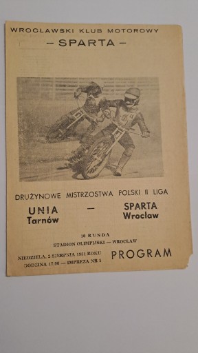 SPARTA WROCŁAW - UNIA TRANÓW 02/08/1981 - ПРОГРАМА ЧИСТИЙ СПІДВЕЙ