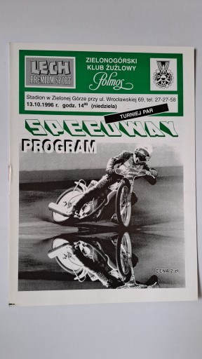 ПАРНИЙ ТУРНІР - FALUBAZ ZIELONA GÓRA 13/10/1996 - ПРОГРАМА PURE SPEEDWAY
