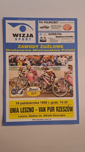 UNIA LESZNO - STAL RZESZÓW 18/10/1998 - ПРОГРАМА ЧИСТИЙ СПІДВЕЙ