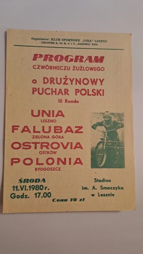 DPP UNIA LESZNO ZIELONA GÓRA OSTRÓW BYDGOSZCZ 11-6-80 SPEEDWAY PROGRAM CLEAN