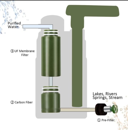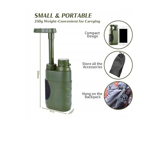 Не містить хімікатів, він забезпечує принаймні 5000 літрів чистої та безпечної питної води з будь-якого джерела, наприклад струмків і струмків.