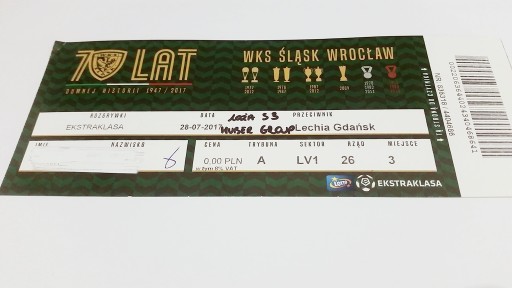 ŚLĄSK Wrocław - LECHIA Gdańsk квиток 28/07/2017