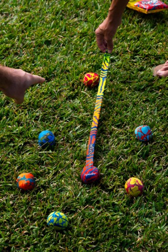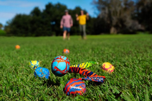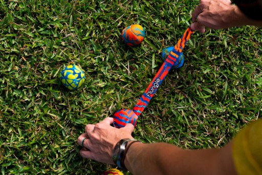 Настав час для Flungle! Візьміть м'яч за хвіст, покрутіть його і киньте далеко перед собою. Мета гри — побачити, яка з кульок, наповнених піском, припаде ближче до кульки з хвостиком.