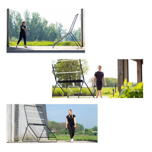 ✅ Відбійник складається з двох сіток (кожна розміром 115 х 110 см), тому ви можете практикувати різні удари ракеткою. Наприклад, нижня сітка ідеально підходить для потужних ударів, таких як Smash Balls, і ударів, таких як Vibora або Bandeja. Верхній ідеально підходить для таких ударів, як форхенд і бекхенд.