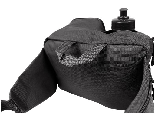 Поясний рюкзак має компенсуючий ремінь, який полегшує носіння рюкзака, додатково утримує пляшку з водою на місці та дозволяє прикріпити додаткове обладнання чи одяг.