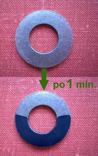 На фото, що додається, показано сталеву подушечку до і після 1-хвилинного занурення в препарат.