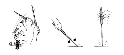 Телескопічна палиця, т. зв пруток, виготовлений з оксидованої (чорненої) інструментальної сталі. Дуже міцний і стійкий до механічних пошкоджень.