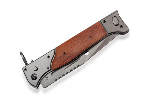 Ергономічна рукоятка виконана з алюмінієвих пластин і дерев'яної обшивки, закріплених шурупами.