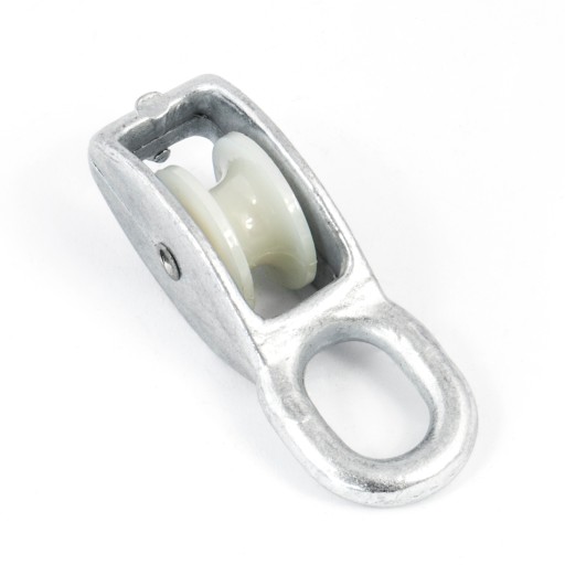 Канатний шків з одним нейлоновим кільцем, призначений для ручного підйому та навішування вантажів за допомогою мотузок.