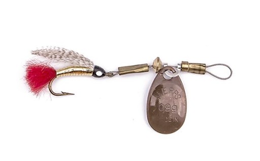 Щось щось середнє між штучною мушкою і блешнею, найлегший візерунок Mepps і в той же час досить складна конструкція. Мікростример, прив'язаний на гачок №8, з тулубом із металевої мішури, з крилами на боках крижня та хвостом червоного антрону, а також чорною головою з білим вушком. Мушка, прикріплена до гнучкої осі з лопаткою з двома нулями - в трьох кольорах: сріблястий, золотий і мушко-коричневий. Один розмір, одна вага - 0,9 г. Для ультралегких спінінгів - 0,12 волосіні, без вертлюжків і англійських шпильок. Короткі, розмірені закиди, і ось у сфері інтересів спінінгіста з'являється ельца, красноперка, а на бортах ялинкового комплекту і з портового пірсу справжні балтійські оселедці. Одна з небагатьох блешень, яку регулярно ловлять харіуси, особливо в коричневому варіанті. У лососевих водах навіть під час сильної спеки він здатний виманити красиву форель із ураженої спекою печери. Так само, як головні на малих і дуже чистих річках.