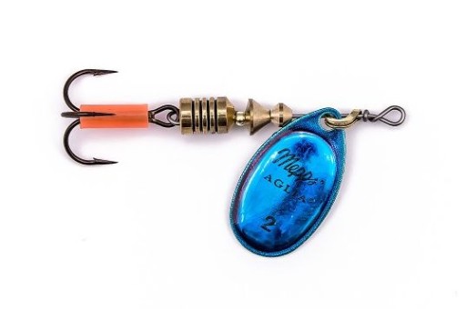 Блешня Mepps Aglia - оригінальна французька блешня. Це приманка №1 у світі; На Mepps Aglia було спіймано більше трофейної риби, ніж на будь-яку іншу приманку. Його класичне французьке лезо забезпечує постійний спалах і вібрацію. І те, і інше привабить рибу, але разом вони стануть смертоносною комбінацією, якій риба не зможе встояти. Звичайний високий гачок Aglia має дуже гострі гачки з яскраво забарвленими втулками-притягувачами. «Костяком» Aglia є міцний вал із нержавіючої сталі. До цього древка прикріплено увігнуте овальне лезо, корпус блешні і, звичайно ж, гачок. Лезо може бути посрібленим або позолоченим, полірованою латунню, міддю або пофарбованим епоксидною смолою.