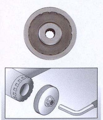 До продажу пропонуємо гайковий ключ для каретки каретки HOLLOWTECH II/HOWITZER/GXP. Ключ виготовлено з дуже міцної хромомолібденової CrMo сталі та має шестигранний ключ. Гайковий ключ має подвійну структуру - одна сторона використовується для відкручування нижнього кронштейна, інша сторона використовується для відкручування кріпильного гвинта.