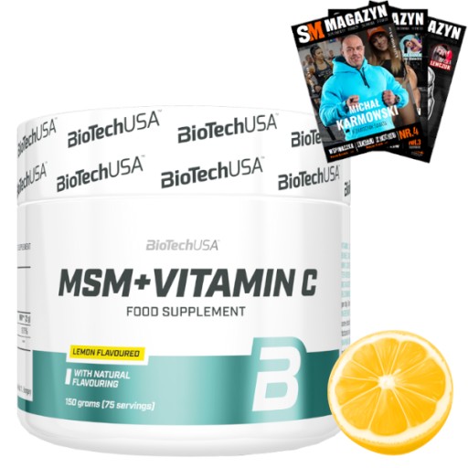 Добавка бренду BioTech має оздоровчий ефект і характеризується цілим рядом застосувань. МСМ є природним джерелом сірки. Він чудово засвоюється, оскільки досягає всіх тканин організму протягом 24 годин після прийому. Забезпечує ідеальну підтримку суглобів, усуває головний біль, болі в суглобах і м'язах. Надзвичайно благотворно впливає на шкіру, нігті та допомагає боротися зі шрамами. Згідно з науковими дослідженнями, зниження концентрації МСМ призводить до серйозних розладів у вигляді втоми, фізичного перенапруження і навіть депресії та розладів функціонування внутрішніх органів. Тому не можна недооцінювати дефіцит ЧСЧ! Вітамін С, що міститься в добавці BioTech USA MSM + Vitamin C, відповідає за вироблення колагену, підтримує функціонування кісток, хрящів, зубів, ясен і шкіри. Це також антиоксидант, який підтримує правильну роботу нервової системи та зменшує втому.