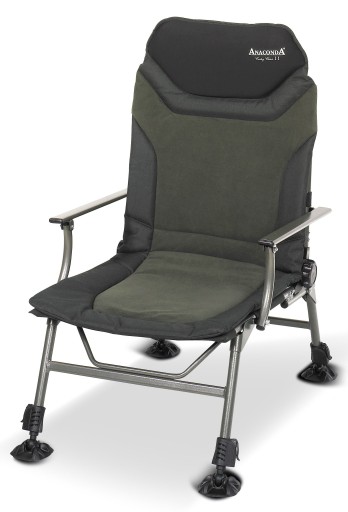 Anaconda Carp Chair II поєднує в собі комфорт, стійкість і багатофункціональність. Посилена рама і широкі ніжки, що запобігають провалювання в багнюці, гарантують стійкість практично на будь-якій місцевості. Флісова наволочка зігріє навіть у холодні осінні або зимові дні. Алюмінієвий замок запобігає небажаному згортанню ніжок.