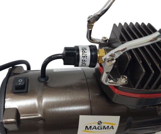 - має вбудований реле тиску, який вимикає двигун при 4 атм і включає його знову при 2-2,5 атм