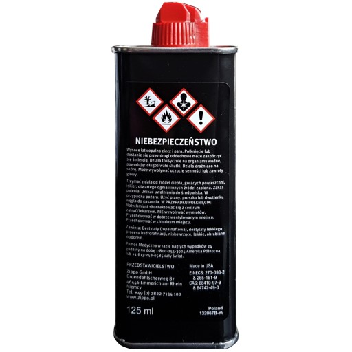 - Оригінальний бензин Zippo® для бензинових запальничок.