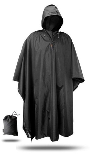 Накидка виготовлена з водонепроникної тканини (100% поліестер, додатково просочена зсередини, водонепроникність в межах 2700 мм водяного стовпа) невеликої товщини, завдяки чому займає мало місця і практично не обтяжує багаж в подорожі. або подорож. Він корисний і влітку, і взимку. Накидка настільки містка, що під неї можна помістити і рюкзак.