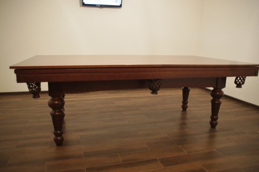 - Дизайн моделей столів, що випускаються нашою компанією, настільки продуманий, що замовник жодним чином не торкається ногами контурів столу. Ми гарантуємо, що в поєднанні з банкетною стільницею він створює ідеальний обідній стіл. Що стосується нижньої конструкції, то вона відставлена під вінець, щоб ми могли вільно сидіти і не торкатися ніжками нижньої дошки. Можливо, ви не бачите цього на доданих фотографіях пропозиції, але це те, що є. Конструкція столу виробляється з 1995 року, тому завдяки нашому досвіду та пропозиціям клієнтів вона була ретельно вдосконалена та розроблена для ідеального поєднання більярдного та обіднього столу.