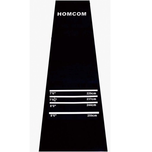 Справжня насолода для всіх любителів дартсу. Варто оснастити себе гумовим захисним килимком, який також оснащений лініями для кидка, щоб ви могли вільно вимірювати, де розташуватися. Відстань вказується в сантиметрах і дюймах. У верхній частині килимка розміщений логотип нашого бренду HOMCOM.