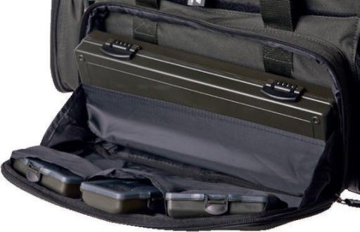 З обох боків сумки є 2 кишені із захисною кришкою Hard Case. Велике основне відділення містить 3 великі органайзери Tackle Chest Large, які відокремлені один від одного відділеннями на липучках; їх можна зняти зверху. Всередині передньої кишені є Rig Carrier з невеликими відділеннями, а також ST-Chest 1, 2 і 3. Передню кишеню можна відкрити за допомогою блискавки або липучки. Жорстку кришку сумки також можна використовувати як столик. Плечовий ремінь з щільною підкладкою, дві ручки та стійка до бруду основа з ПВХ доповнюють особливості сумки Slide In Tray.