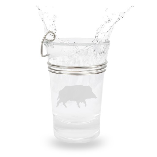 Унікальна скляна склянка з металевим обідком, прикрашена мисливським гравіюванням.