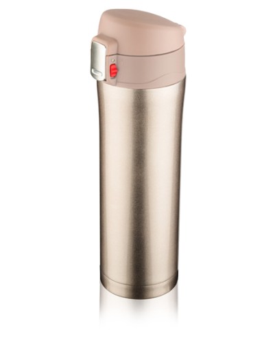 практична та корисна під час подорожей чашка LOCK має найкращі характеристики одукті. Кружка обнащена зручним мундштуком, з якого можна легко пити. Мундштук з'єднаний з повністю герметичний, кришталевий, непрозорий для рідини. Завдяки відмінній термоізоляції - вакууму між стінками - кухоль зберігає температуру улюбленого напою всього за 13 годин. Інноваційний замок-замок захищає чашку від випадкового відкриття. Інтер'єр був зроблений зі сталі. Ємність чашки 450 мл.