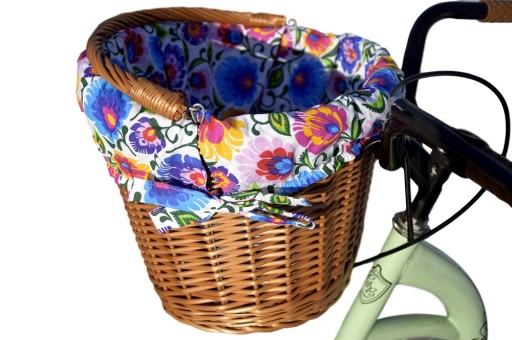 Плетений кошик для велосипеда з гачками + ПОДкладка - колір обробки на вибір (100% бавовна) - ідеально підходить для велосипедних прогулянок, шопінгу, а також для перенесення собаки чи кота. Дуже міцна конструкція гарантує безпечне та зручне перенесення покупок. Кошик розміщується на передній частині керма за допомогою відповідно зігнутих металевих стрижнів, захищених спеціальним пластиком.