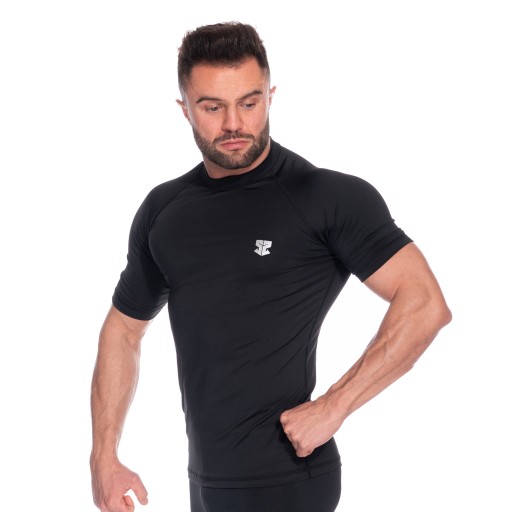футболка. Створений для забезпечення оптимальної регуляції температури тіла під час тренування шляхом відведення вологи з поверхні шкіри, запобігаючи при цьому надмірній втраті тепла та уникаючи ефекту прилипання мокрого матеріалу до тіла. Термоактивні білизняні вироби мають бактеріостатичні властивості, які, контролюючи рівень активності бактерій, підтримують їх природний баланс на шкірі.