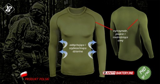 Іони срібла, що містяться в трикотажі, пригнічують ріст бактерій і зменшують утворення неприємних запахів. Це значно підвищує комфорт використання засобу та сприяє підтримці природного біобалансу шкіри. Термоактивний одяг BERENS серії Combat дуже швидко вбирає вологу з поверхні тіла і пропускає її далі, зберігаючи шкіру сухою і забезпечуючи їй відповідний мікроклімат.