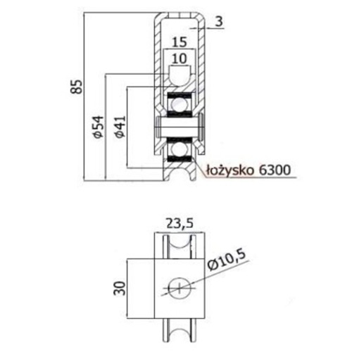 Металевий ролик 54 мм з мотузковими тримачами характеризується дуже низьким опором коченню. Він має шар цинку, який захищає його від корозії. Він дуже міцний і має високу стійкість до стирання. Він має майже надійну кулькову опору та доріжку кочення, адаптовану до діаметра кабелю.