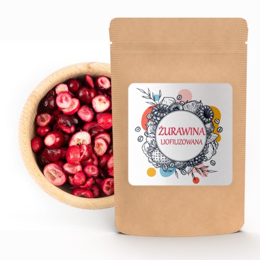 Продукт без додавання цукру. Без консервантів. Завдяки процесу сублімації плоди журавлини зберігають первісну форму, колір, аромат і приблизно 95% усіх цінних поживних речовин.