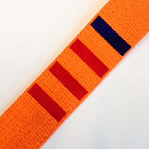 Кожна балка виготовлена з матеріалу, схожого на замшу. Кольори підібрані правильно - вони дуже насичені, відмінно контрастують з кольором пояса і добре видно. Спеціальний, надтонкий шар клею на дні активується теплом і проникає в бавовну. Балка приклеюється до пояса абсолютно міцно, не дозволяючи її зламати навіть ножем! Ні під час тренувань, ні під час прання точно не відклеїться!