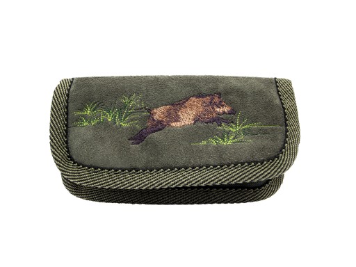 Підсумок на поясі для 6 патронів. Всередині з кодури, зовні із замші. Він має зміцнені стрічкою краї та тихий магнітний затиск.