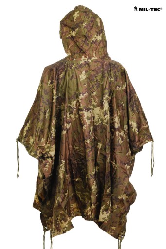Ідеальна військова нашивка, візерунок армії США. Рекомендовано любителям туризму, відпочинку на природі та всім, хто активно проводить час. Незамінний у виживанні. Виготовлений з міцного 100% нейлонового матеріалу, посиленого сіткою RIP-STOP. Дуже міцний і в той же час легкий, він займає мало місця. Повністю водонепроникний і вітронепроникний, він захищає від несприятливих погодних умов. Надзвичайно універсальний, окрім класичної функції дощовика, з нього можна побудувати намет/хатинку, як водонепроникне покриття для спального мішка, як ізоляцію від землі, ідеально підходить для маскування, як брезент або вітровий щит, у виживання для отримання води тощо. У поєднанні з нижнім костюмом/підкладкою він функціонує як спальний мішок. Накидка оснащена капюшоном на шнурку. Шість монтажних шнурів, розташованих на краю, полегшують кріплення, шнури вбудовані в мідні вушка. Система з шістнадцяти мідних застібок дозволяє застібати накидку в рукави, що запобігає її зльоту. Застібками можна закріпити ковдру для створення сумки або спальника і кілька накидок для великого намету. Нержавіюча сталь, елементи з чорного металу. Зсередини прикріплений довгий шнурок для зав’язування на талії або кріплення. Всі шви оцинковані - водостійкі. Універсальний розмір, можна носити на рюкзаку. Окантовка з подвійним шаром матеріалу для посилення. У комплект входить водонепроникний транспортний чохол.