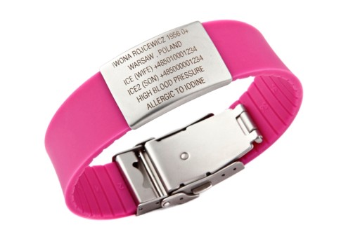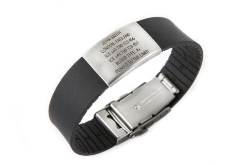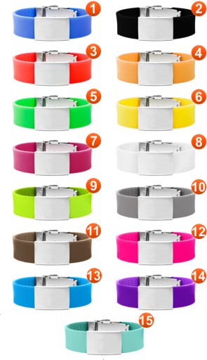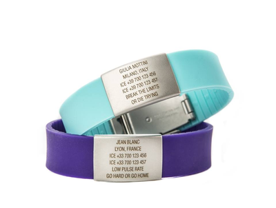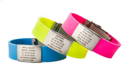 На браслет Elite можна помістити всі найважливіші дані, які можуть стати в нагоді в критичну хвилину. Вони будуть вигравірувані лазером на бейджі з нержавіючої сталі, тож вони постійні та ніколи не змиватимуться чи не зітруться. В наявності 15 кольорів браслета Elite.