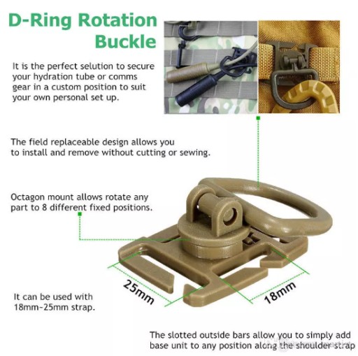 - Підходить для ременів MOLLE - розміри ременя molle від 18-25 мм