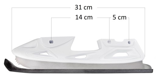 У комплект входять чохли на сталеву частину ковзана (на фото) і ключі, за допомогою яких можна самостійно замінити ковзани.