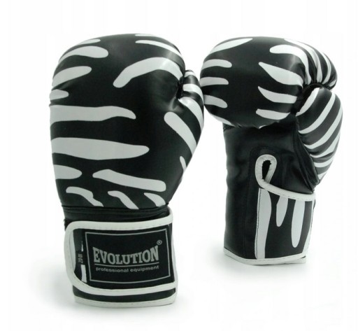 Рукавички Zebra від Evolution - ще одна модель боксерських рукавичок, які привертають увагу своїм оригінальним зовнішнім виглядом. Цікавий дизайн, оптимальний профіль і використання високоякісного синтетичного матеріалу зробили цю модель особливо цінованою серед тренувальних гравців.