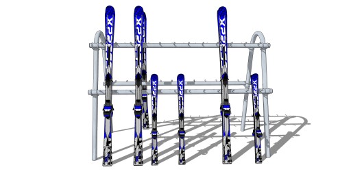 Відкритий багажник для лиж – відкритий багажник, призначений для курортів, гостьових будинків або закладів громадського харчування, де ми можемо залишити спортивне обладнання. На такому типі стійки можна розмістити як старші, так і молодші лижі, додатково в кожен тримач можна розмістити сноуборд. Система цього стелажа повністю знімна, що дозволяє зберігати його після сезону з економією місця.