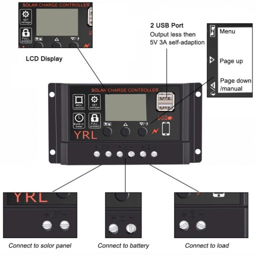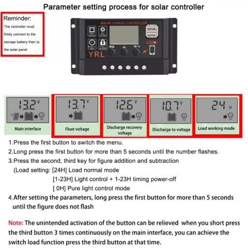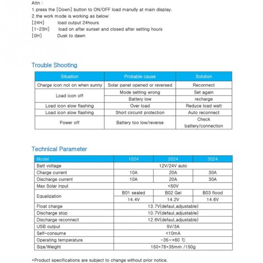 Цей контролер має функцію регулювання освітлення за часом після настання темряви, сонячне світло не потрапляє на сонячні батареї, а перемикач активує вихід постійного струму на певний період часу. Він також працює в ручному режимі, контролюючи процес розряду акумулятора. Він не має лічильників перетвореної енергії (кВт·год, А та А·год).