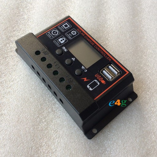 300R10 СОНЯЧНИЙ РЕГУЛЯТОР ЗАРЯД КОНТРОЛЕР 30A, для фотоелектричних панелей 12/24 В з РК-дисплеєм і портами USB