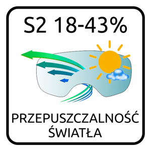 Фільтр категорії S2 - пропускання сонячного світла від 18 до 43%. Окуляри з цим фільтром рекомендовані для їзди в сонячний безхмарний день або з частковою хмарністю.
