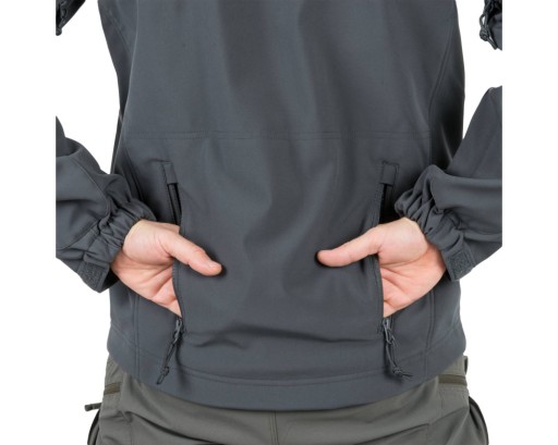 Helikon Gunfighter - легка і дуже практична куртка софтшелл. Він виготовлений з 3-шарового гнучкого матеріалу Shark Skin, який забезпечує чудову ізоляцію та захист від вітру та вологи, зберігаючи при цьому високий рівень повітропроникності. Ззовні світшот покритий тефлоновим покриттям DuPont, яке захищає від бруду та води. Зсередини обшита м'яким флісом. Куртка має сім кишень, прихований у комір і регульований капюшон, вентиляційні блискавки під пахвами, липучки на манжетах і рант. Капюшон можна зручно регулювати, не виймаючи рук з кишень, за допомогою шнурків, захованих у нагрудних кишенях.