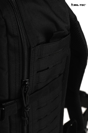 Штурмовий рюкзак Assault, сучасна модель з легкою модульною системою за технологією Laser Cut. Продукт німецької компанії Mil-Tec. Військова специфікація гарантує функціональність і безкомпромісні рішення. Дуже практичний, місткий і зручний. Він буде широко використовуватися як повсякденно, так і в бойових умовах. Повністю виготовлений з матеріалу Cordura 800D з підвищеною зносостійкістю. Внутрішній шар ПУ гарантує водонепроникність матеріалу. Розгалужена система кишень і відділень, в ній кожна річ знайде своє місце. Чотири камери різного розміру з прямим доступом ззовні. Вбудована кишеня для гідратаційного міхура, прихованого під задньою частиною, закривається на липучку. Внутрішня система з десяти відділень для дрібниць (ручки, ножі, ліхтарики, блокноти). Великі модульні панелі, виготовлені за технологією Laser Cut, дають можливість прикріпити додаткові кишені та підноси. Laser Cut - це остання версія системи Molle, місця для модульної стрічки були вирізані лазером безпосередньо в тканині. Модульна система Laser Cut набагато легша за стандартні пришивні стрічки та гарантує краще маскування. Передня та бічні панелі працюють за популярним стандартом MOLLE 25 мм (PALS). Бічні панелі, які можна розстібати зверху і використовувати як кишеню для подовжених речей. Місця контакту з тілом (спинка і лямки) оброблені міцною сіткою 3D MESH. Сітка зберігає відстань від тіла, дозволяючи повітрю циркулювати під рюкзаком. Широкі регульовані плечові лямки з м'якою поролоновою підкладкою. Анатомічна конструкція ременів сприяє хорошому розподілу ваги та комфорту. Ремінці, посилені стрічкою, оснащені D-кільцями для кріплення підручних речей. Широкий стегновий ремінь забезпечує стійкість рюкзака під час бігу та повзання. Настегновий ремінь застібається на регульовану пряжку, можливість його повного відстібання. Двосторонні закриті експресори - спеціальна конструкція підвищує водонепроникність за допомогою ущільнювальних смуг. Слайдери оснащені шнурами, що полегшують роботу замків, що додатково їх глушить. Бокові та нижні компресійні лямки для зменшення габаритів рюкзака. Ремені запобігають переміщенню вантажу і дозволяють прикріпити додаткове обладнання. Поролонова спинка, перегородка між двома основними відділеннями з м'яким наповнювачем. Теплоізоляція запобігає надмірному нагріванню або замерзанню води в верблюді. Верхня ручка для транспортування також служить ручкою для евакуації. Міцні пряжки з ABS пластику. Вільні кінці лямок закріплені липучками. Густий, іноді подвійний шов і підсилення в критичних місцях.