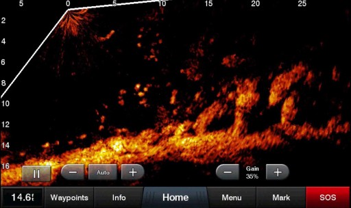 Режим LiveScope down дозволяє переглядати живі, прості для інтерпретації зображення сонара, які сканують об’єкти та рибу під вашим човном дуже детально – на відстані до 61 метра – навіть коли човен стоїть.
