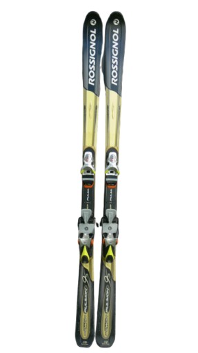 Лижі б/у ROSSIGNOL POWER PULSION 9S, довжина 170см; бічний виріз 110-65-98, радіус повороту 15м; з кріпленнями ROSSIGNOL AXIAL RACE 120 (діапазон 4 - 12), на пластині для довжини черевика 260 - 360 мм.
