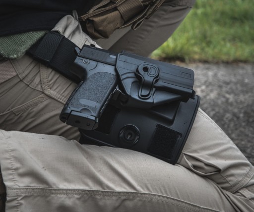 - Кобура може бути оснащена петлею для спортивного ременя, кріпленням MOLLE, панеллю для ніг або підтяжками.