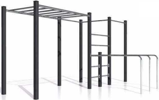 Набір закріплений болтами та адаптований для бетонування, а завдяки антикорозійному захисту та порошковому покриттю ідеально підходить для тренувань на відкритому повітрі незалежно від пори року.