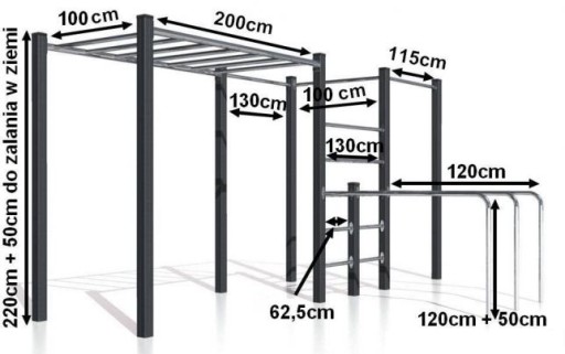 - Висота штанг і горизонтальної драбини: 230см