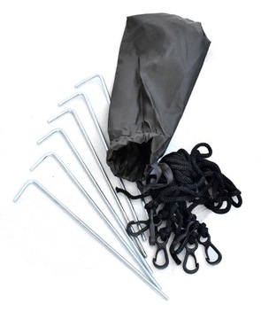 - Posiada w komplecie mocowania do ziemi tzw śledzie